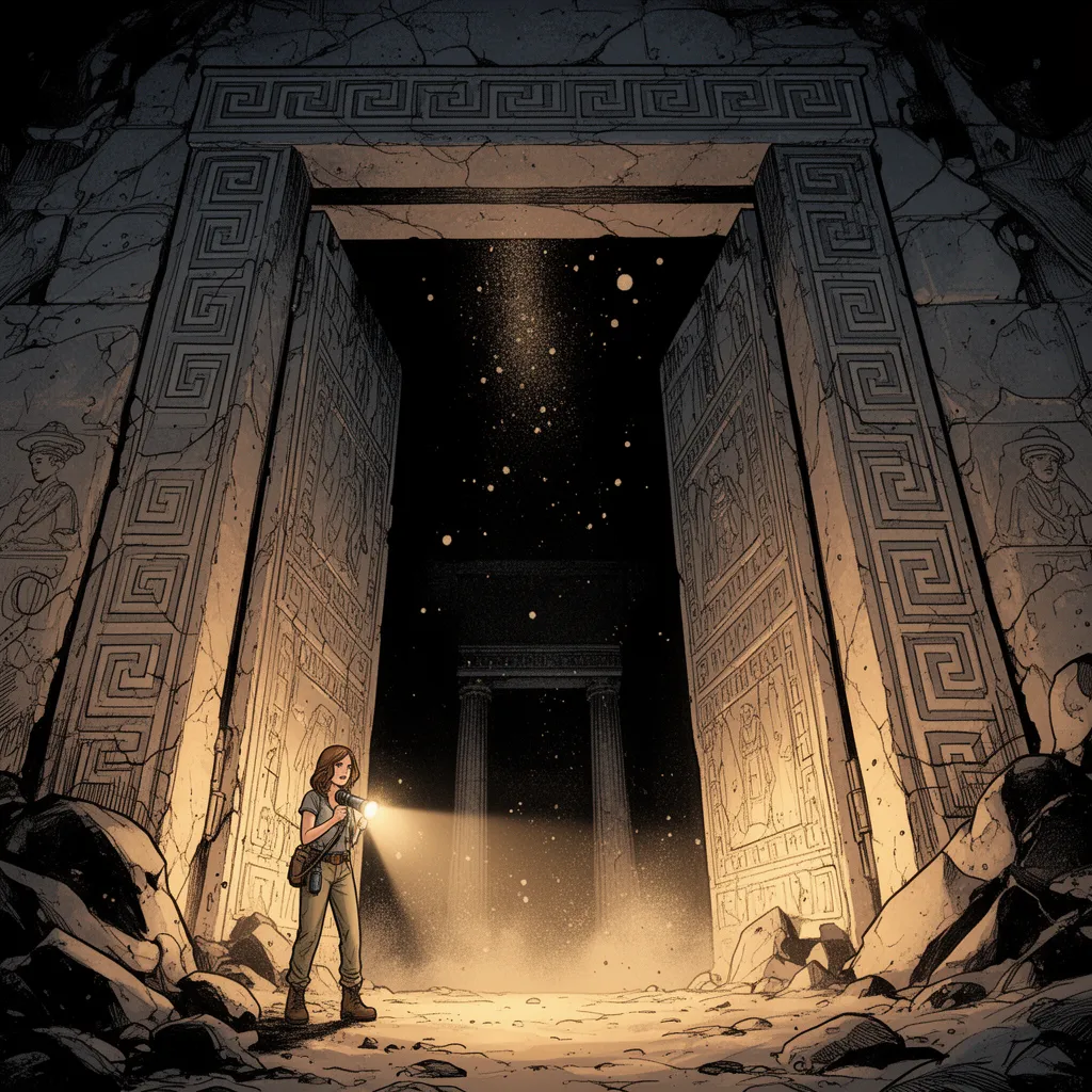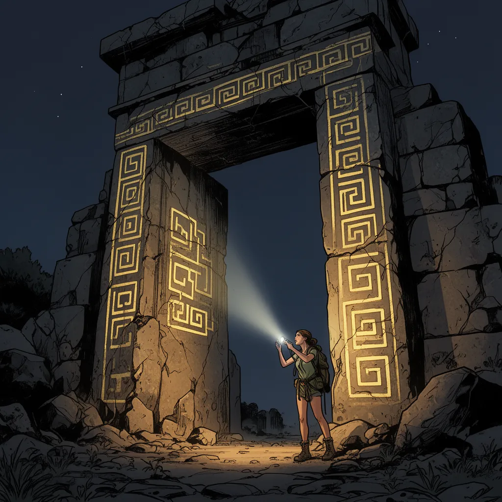 Die kühle Abendluft strich durch die antiken Ruinen von Samos, als Dr. Elena Rost ihre Taschenlampe auf das massive Steintor richtete. Monatelang hatte die Archäologin nach diesem verborgenen Eingang gesucht. Die Legende besagte, dass die Anhänger des antiken Mathematikers Pythagoras hier ihr größtes Wissen hüteten.