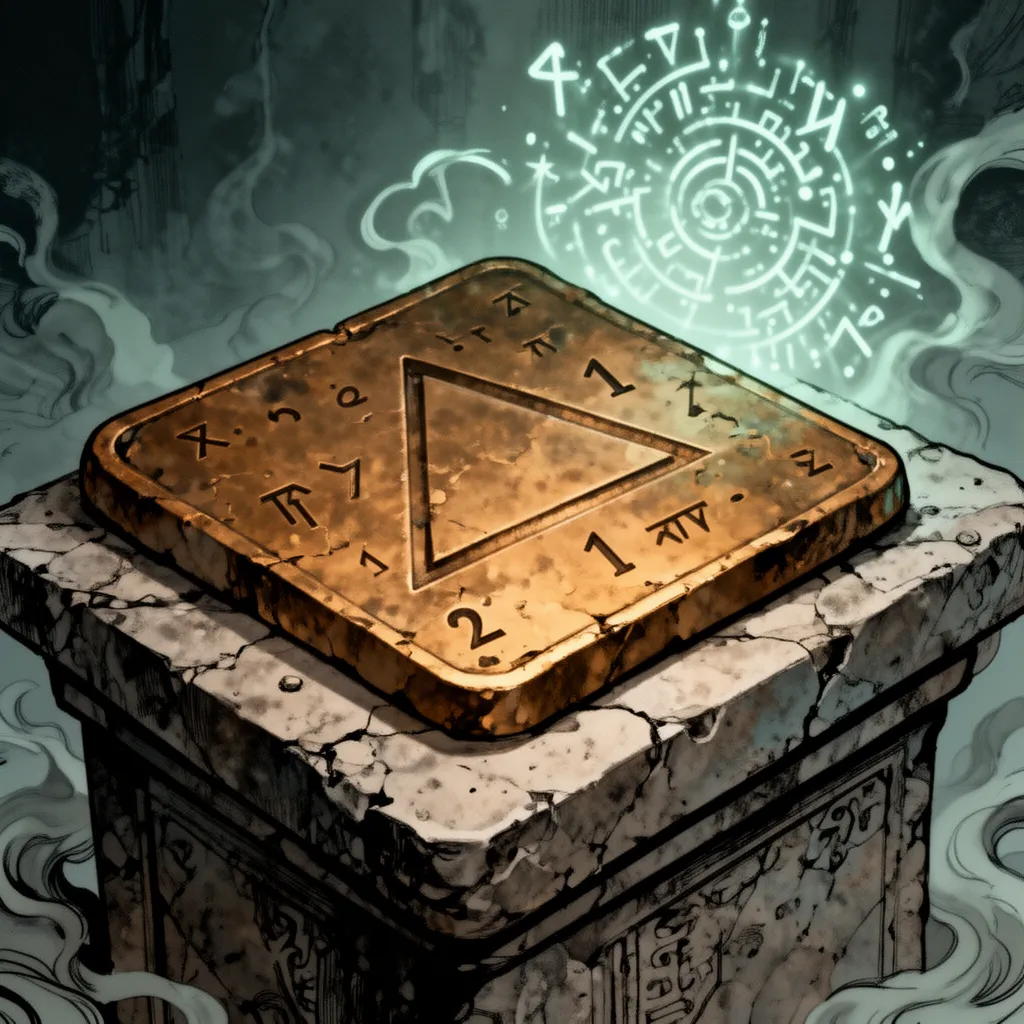 Sie befand sich in einem kreisrunden Gewölbe, das von glatten Marmorsäulen gestützt wurde. In der Mitte des Raumes stand ein einzelner, hüfthoher steinerner Altar. Darauf ruhte eine große, von Grünspan überzogene Bronzetafel. Als Elena näher trat und den Staub vorsichtig mit ihrem Pinsel entfernte, erkannte sie sofort, worum es sich handelte: Ein weiteres mathematisches Rätsel, aber dieses Mal von einer viel düstereren Natur.