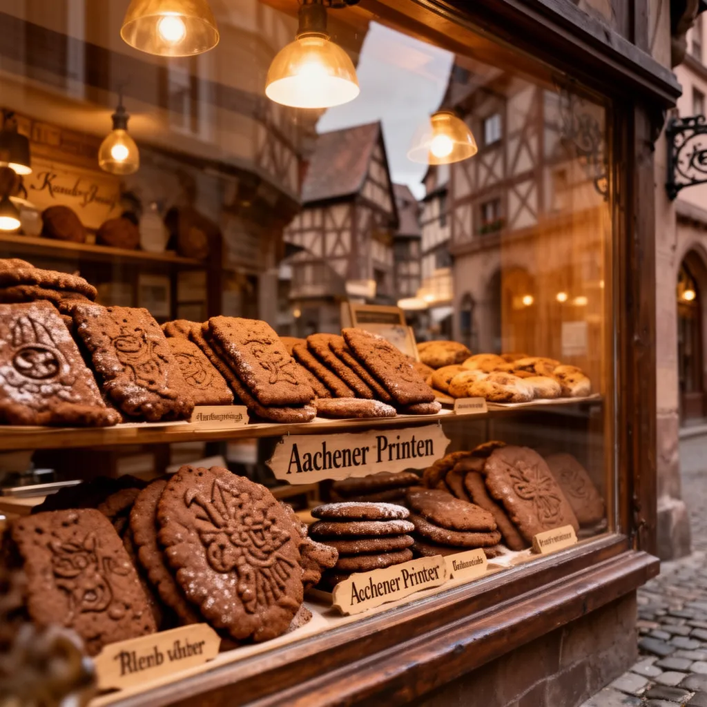 - Aachener Printen: Eine geschützte, lokale Spezialität; ein braunes, würziges Lebkuchengebäck.